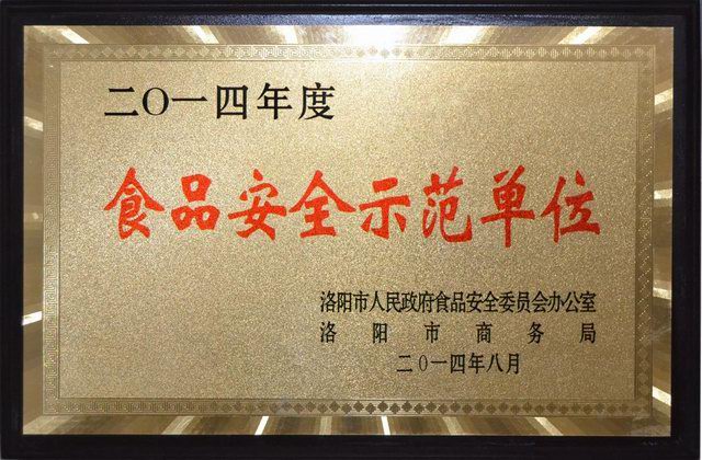 2014年9月3日下午,洛陽(yáng)市召開(kāi)創(chuàng)建食品安全示范單位現(xiàn)場(chǎng)推進(jìn)會(huì),洛陽(yáng)市政府領(lǐng)導(dǎo)、相關(guān)委局負(fù)責(zé)人及食品安全示范單位申報(bào)企業(yè)參加了推進(jìn)會(huì),會(huì)上授予洛陽(yáng)正大食品有限公司“食品安全示范單位”。