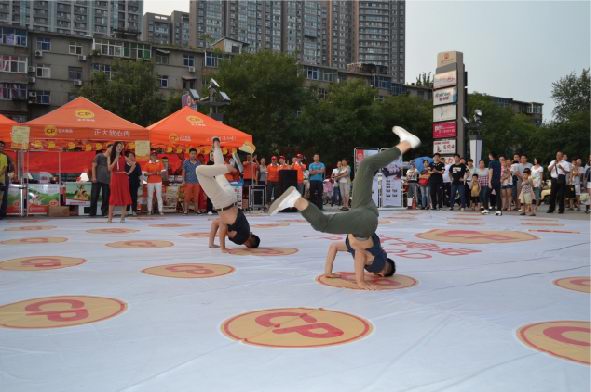 活動時長大約30分鐘,首先快閃人員在王府井南昌路店門口廣場中央集合,穿戴著簡單大方、整齊利索的衣物四處游走在人群中。時間一到,音樂響起,歌手慢慢走近中央,一首振奮人心的“我和你”拉開整個活動的序幕,瞬間引起了在場所有人群的關(guān)注。緊接著舞蹈演員閃亮上場,展開了一場激情澎湃的機(jī)械舞,帶動現(xiàn)場觀眾情不自禁參與到表演中來,此時人流迅速聚攏,引起圍觀。然后正大食品有限公司員工身著公司服裝,唱著正大集團(tuán)《愛是正大無私的奉獻(xiàn)》一起出現(xiàn)在廣場中央,隨后幾段歌舞串燒將現(xiàn)場氣氛推向***,在觀眾意猶未盡之時迅速閃開在人群之中。活動過程中穿插進(jìn)行了分發(fā)公司宣傳材料、食品安全知識宣傳單,現(xiàn)場觀眾品嘗了洛陽正大豬肉調(diào)理品、醬鹵產(chǎn)品及集團(tuán)現(xiàn)代食品。