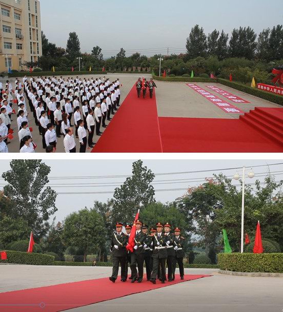 早上八時零八分,升旗儀式正式開始,在雄壯的軍樂聲中,颯爽英姿的護(hù)旗手邁著整齊的步伐護(hù)送國旗走向升旗臺。雄壯的《義勇軍進(jìn)行曲》響起,鮮艷的五星紅旗冉冉升起,迎風(fēng)飄揚,全體員工手持鮮艷的五星紅旗行注目禮,共同高唱國歌,表達(dá)對新中國的崇敬和熱愛。