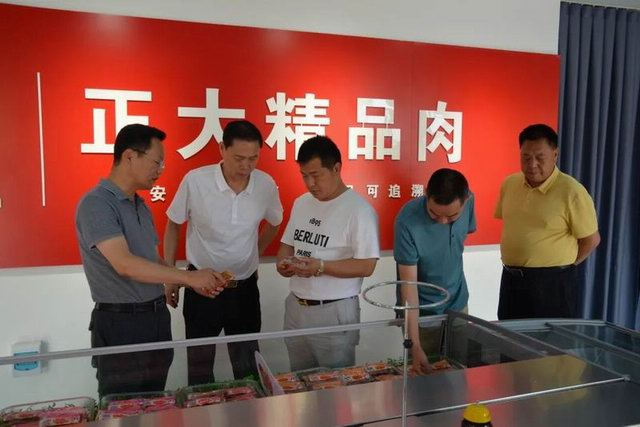 劉長河會長一行首先通過參觀走廊參觀了洛陽正大生豬屠宰、分割加工、肉類食品深加工生產線及產品體驗中心,參觀結束后到公司三樓會議室進行交流座談。